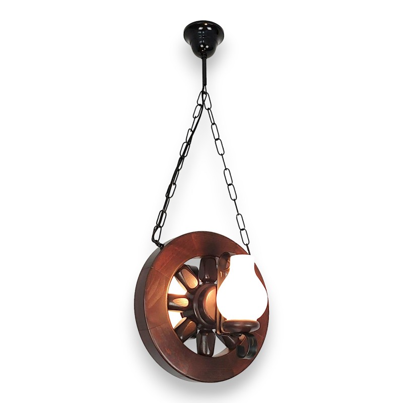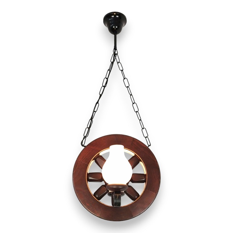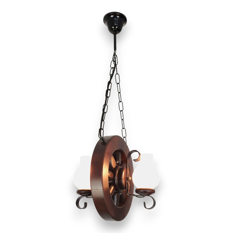 Lustra tip roata din lemn masiv 2 becuri - model rustic 30 cm finisaj wenge | EX-00095