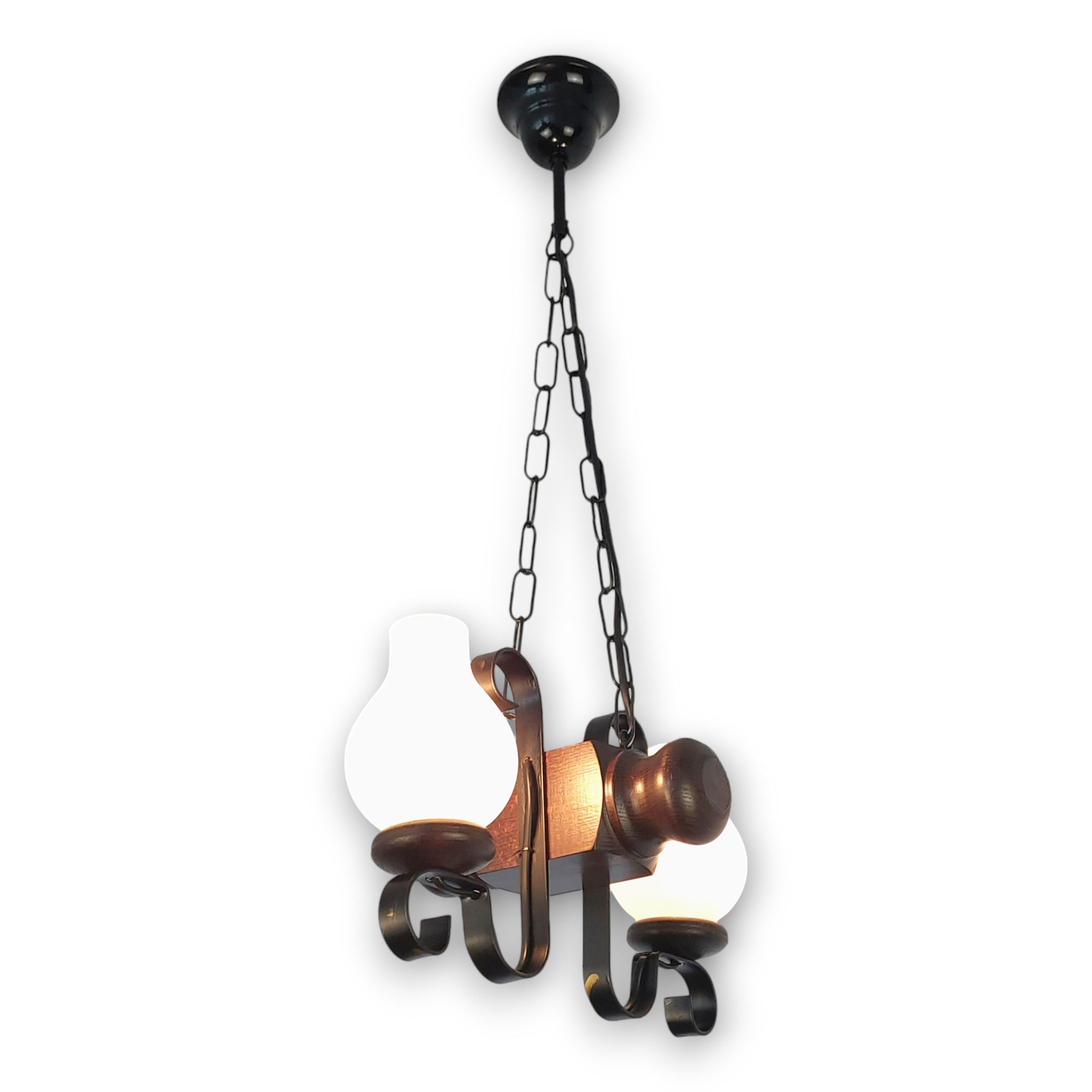 Prezentați-vă casa într-o lumină caldă și primitoare cu lustra Rustic, care emană un farmec atemporal. Această piesă este fabricată cu mândrie în România, demonstrând măiestria artizanilor noștri prin folosirea lemnului masiv de fag, lucrat cu atenție pentru a-i evidenția frumusețea naturală.Designul robust și brațele din metal îndoit într-un negru profund, oferă un aspect clasic care se potrivește perfect cu o varietate de interioare. Cu două dulii E14, lustra Rustic este ideală pentru a dispersa o lumină caldă și acogătoare peste camera de zi, sala de mese sau chiar dormitorul dumneavoastră.Abajururile din sticlă mată, cu forma lor clasică, sunt proiectate pentru a difuza lumina într-o manieră lină, creând o atmosferă relaxantă și confortabilă. Fiecare element al lustrei Rustic a fost conceput cu gândul la durabilitate și estetică, asigurând că lustra va rămâne o piesă de bază în decorul dumneavoastră pentru ani de zile.Instalarea acestei lustre nu numai că aduce iluminatul necesar, dar adaugă și un punct de interes vizual, fiind o alegere perfectă pentru cei care apreciază frumusețea rustică și calitatea autentică a meșteșugului românesc.